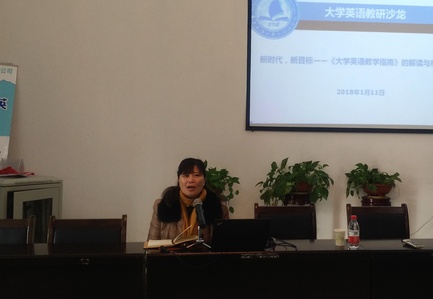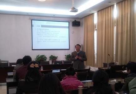 院长唐斌在讲话中用详实的数据分析了近年来省内外高校大学英语课程改革的形势,用成功案例展示了大学英语教师如何将教学和自己的专业结合进行研究。她鼓励大学英语教师在教学内容与方式、教学管理与实施、教学目标与特色、教学研究和改革等方面大胆尝试、积极实践。