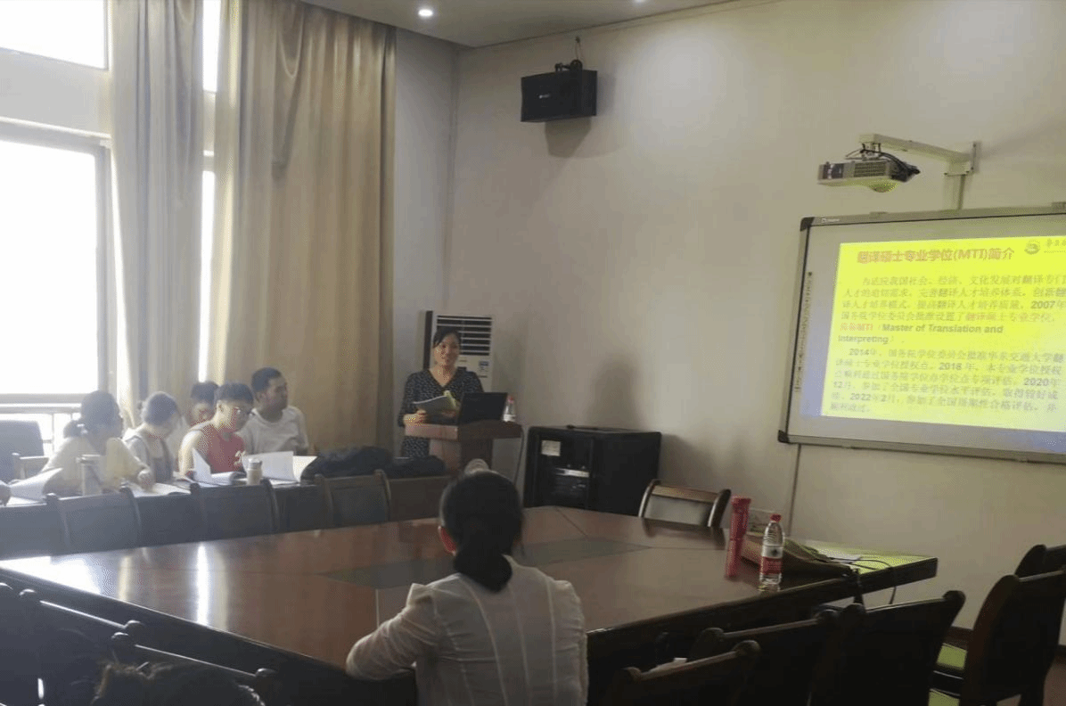 9月5日下午,举行了导师见面会暨“导师说”座谈会,全体硕士生导师和新生参加。会议由李星副院长主持,李星副院长先介绍导师,然后学生逐一自我介绍,师生相互了解,气氛融洽。“导师说”座谈会由何善秀教授和刘庆雪教授主讲。何善秀教授围绕翻译学科的最新研究动态、发展趋势以及前沿热点问题提出了深入浅出的讲解和分析,这不仅拓宽了新生的学术视野,也激发了他们对学术研究的浓厚兴趣。刘庆雪教授建议新生们要有长远规划,多参加笔译实践活动,砥砺深耕,不断提高自身的专业素养。她还建议新生能够在实践中找到兴趣所在。