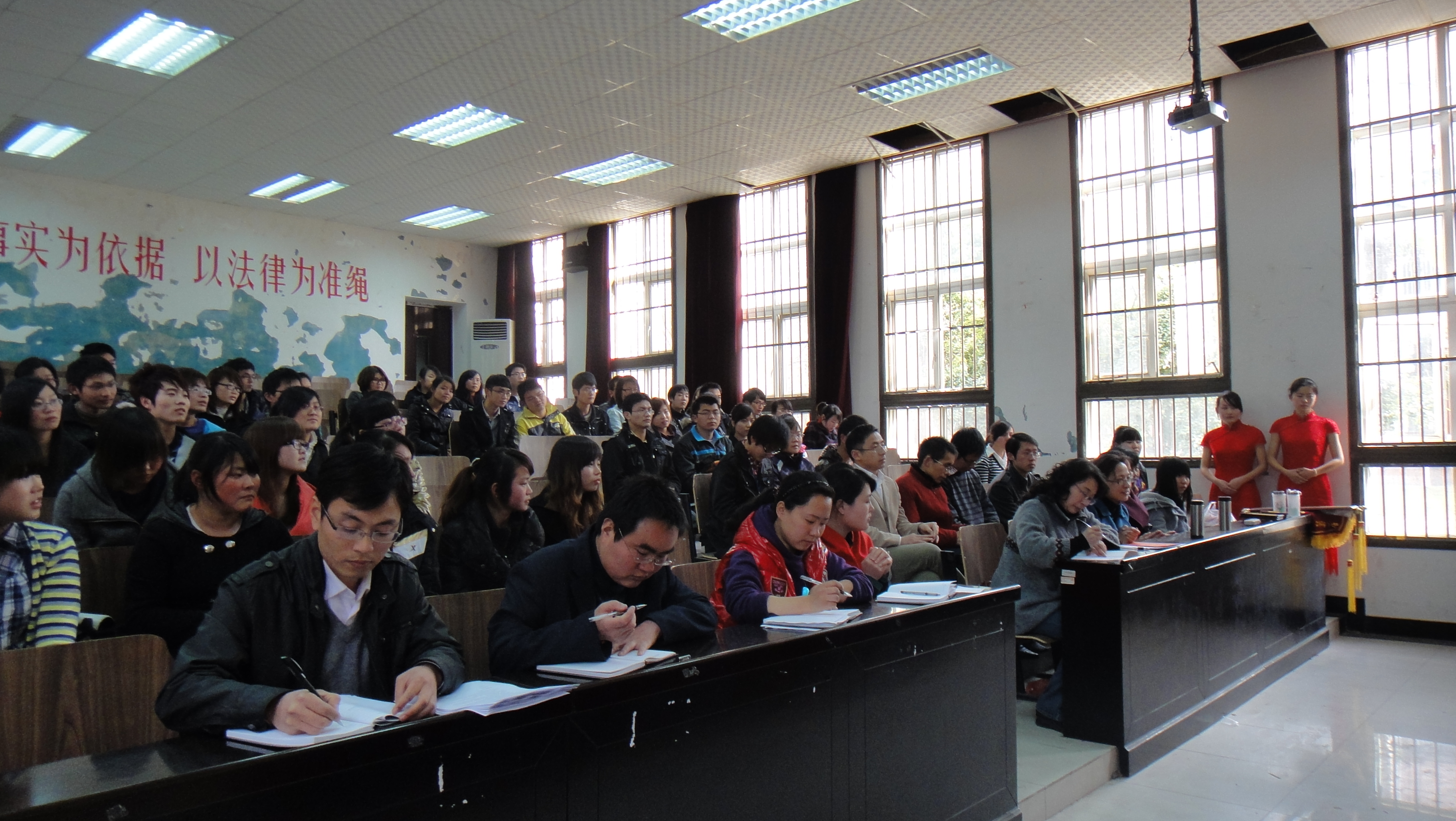 在模拟法庭开展了学习纪检监察工作会议精神的报告会,参会人员有放肆文学
