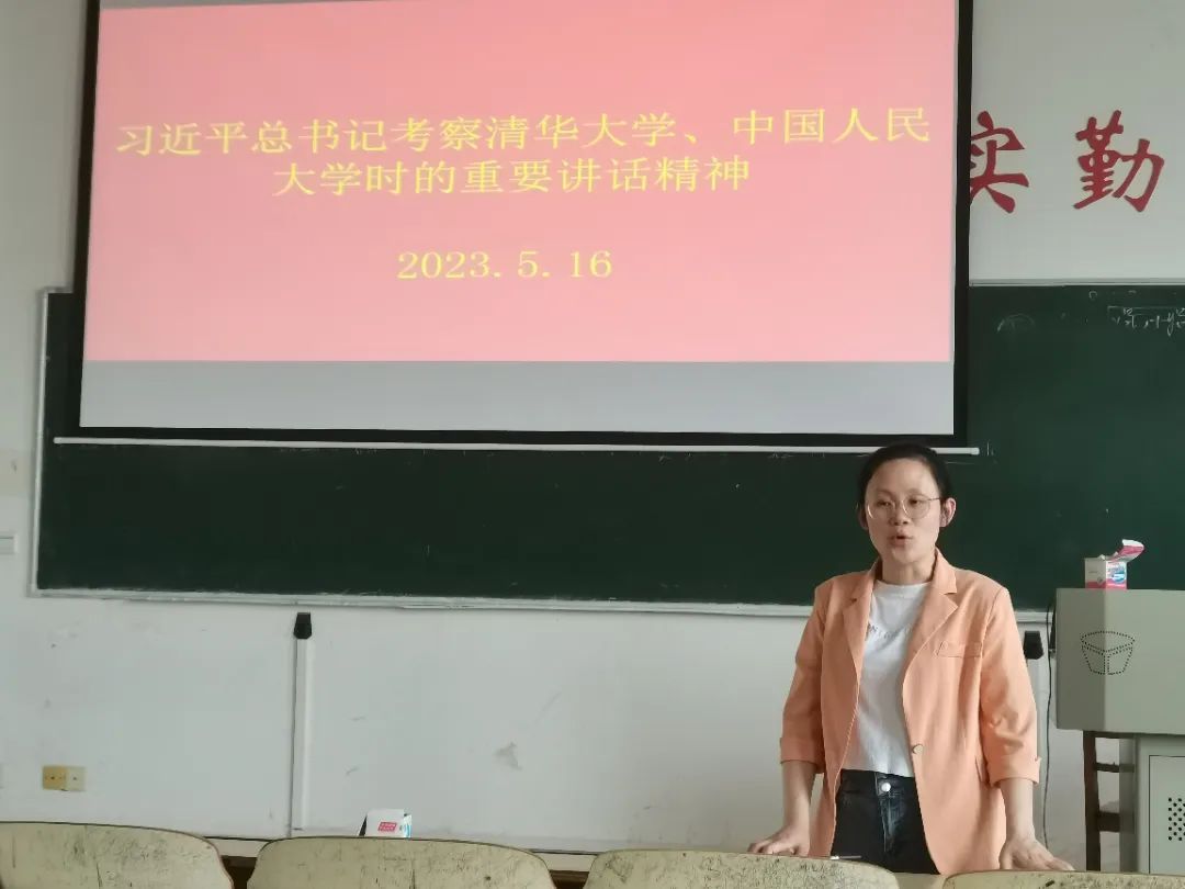 为深入开展主题教育,切实提高全体党员的担当意识和责任意识,深入学习贯彻落实习近平总书记考察清华大学、中国人民大学时的重要讲话精神,5月16日,英语国际贸易学生党支部召开了学习习近平总书记考察清华大学、中国人民大学时的重要讲话精神的主题党日。会议由支部书记徐蒙蒙同志主持,支部全体正式党员及预备党员参会。