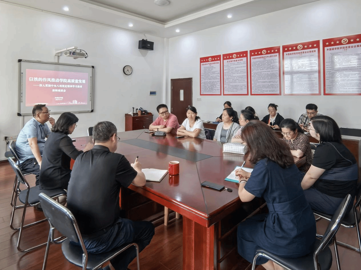 党委书记薛先庆主持召开深入贯彻中央八项规定精神学习教育征求意见座谈会,充分听取教师代表对学院党委班子和班子成员贯彻中央八项规定精神和整改整治工作的意见建议。院长陆秀英,副院长单伟红、李星出席座谈会。