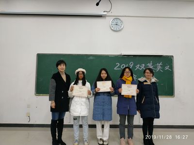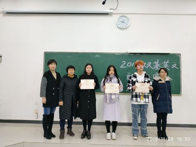 邹健老师、康哲菲老师、以及2018届英语专业组配音大赛一等奖获得者胡安担任英语专业组评委,放肆文学