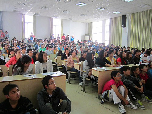 举办了两场外教讲座,分别在图书馆401及403教室同时举行,由此拉开了新一届“大学生英语应用能力竞赛”的序幕。主办方将历年的探索和创新凝练成“听讲座、写心得、学文化”的口号,坚持在理工科院校营造浓厚的外语学习氛围,努力将课堂教学有效地延伸到大学生的课外生活中,让微博中自称“花椒”的交大学子们在校园内能更好地学习外国文化,增强语言应用能力,提高跨文化交际能力。