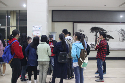 本站讯(记者丁艳影、缪婉琪、段艳梅报道)414日晚,由16国金一班主办的英语角活动在15一楼大厅如期举行,外教Stephen应邀前来参加