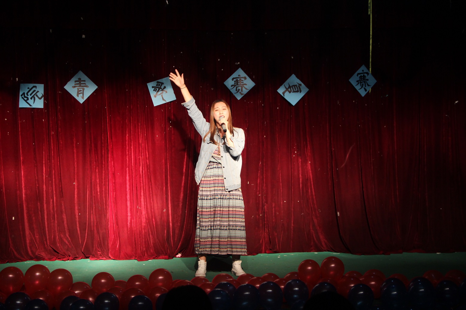 由16级英语(国际贸易)一班唐琪、刘周玉同学组成的糖粥组合以一曲深情动人的《We don’t talk anymore》拉开比赛序幕,纯正的发音,默契的配合,二人将这首高难度的英文歌演绎地堪称完美,赢得了观众们的阵阵掌声;来自16级英语(国际贸易)的姜萌,则登上舞台带来《带我到山顶》,用自己高亢的嗓音与饱满的情感,带动全场观众挥舞手臂,齐声合唱,俨然将全场气氛推向比赛“山顶”。