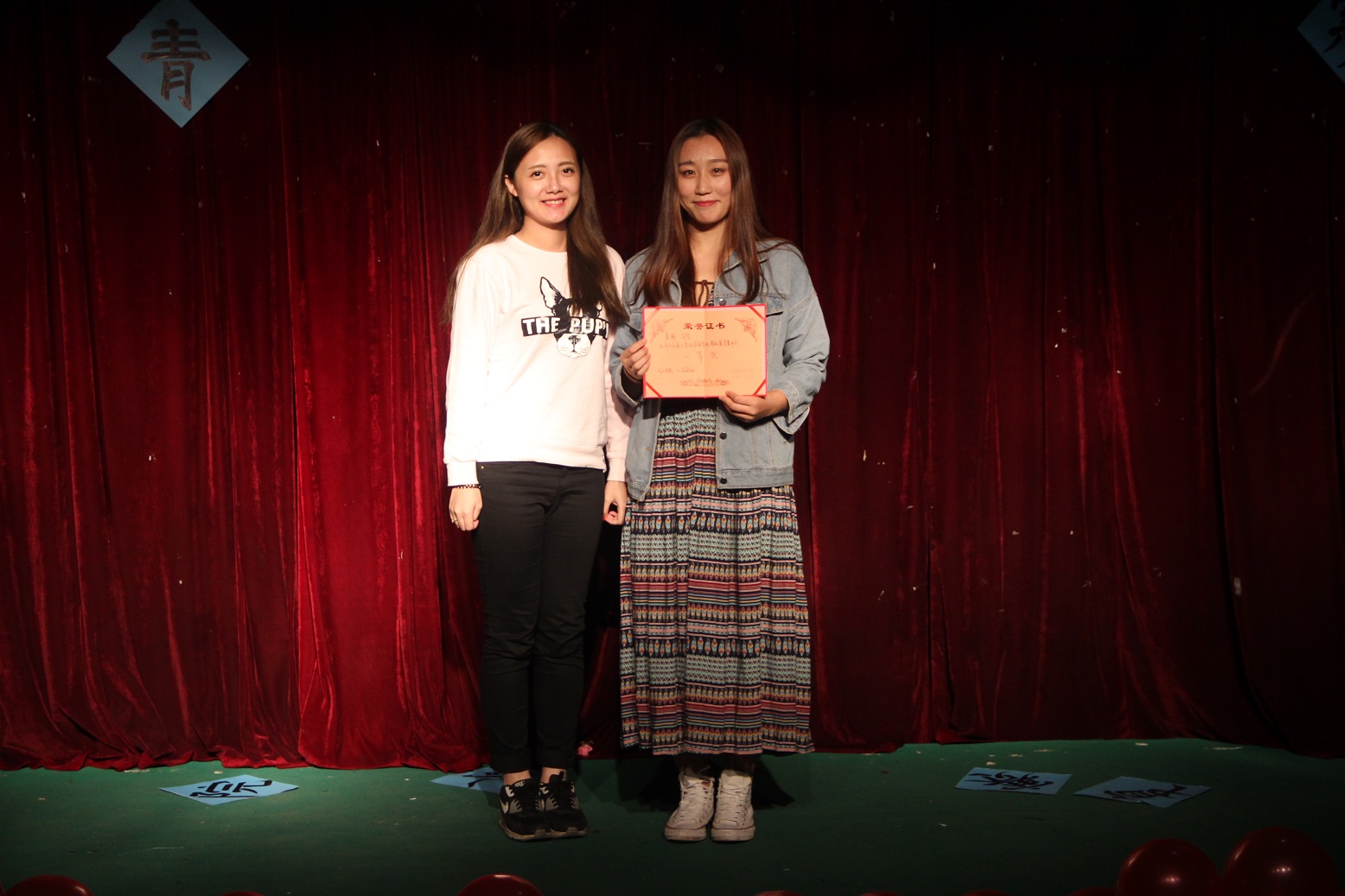 本次比赛采用评委评分制,从歌艺、台风、形象、感染力四项对选手进行考察。经过近两个小时的激烈角逐,16级英语(国际贸易)一班的姜萌获得一等奖,17级国际金融二班楚烨铭、15级国际金融一班的陈雨秋获得二等奖,16级英语(国际贸易)二班刘郁荟、15级国际金融一班陈颖、17级英语(国际贸易)一班胡萝卜丁组合获得三等奖。