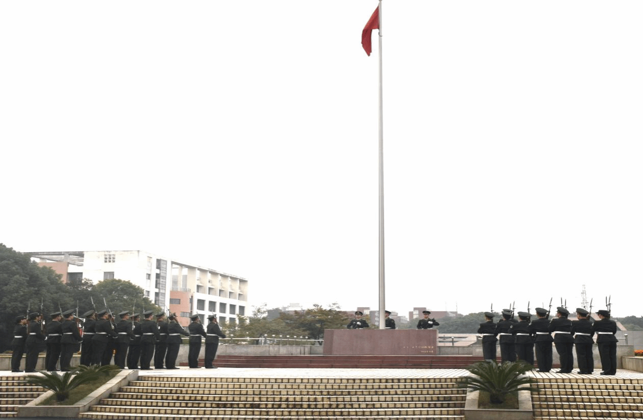 庄严隆重的升旗仪式在教8栋前举行