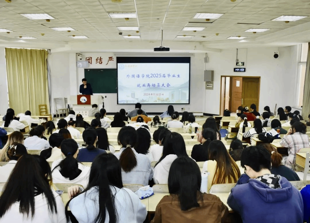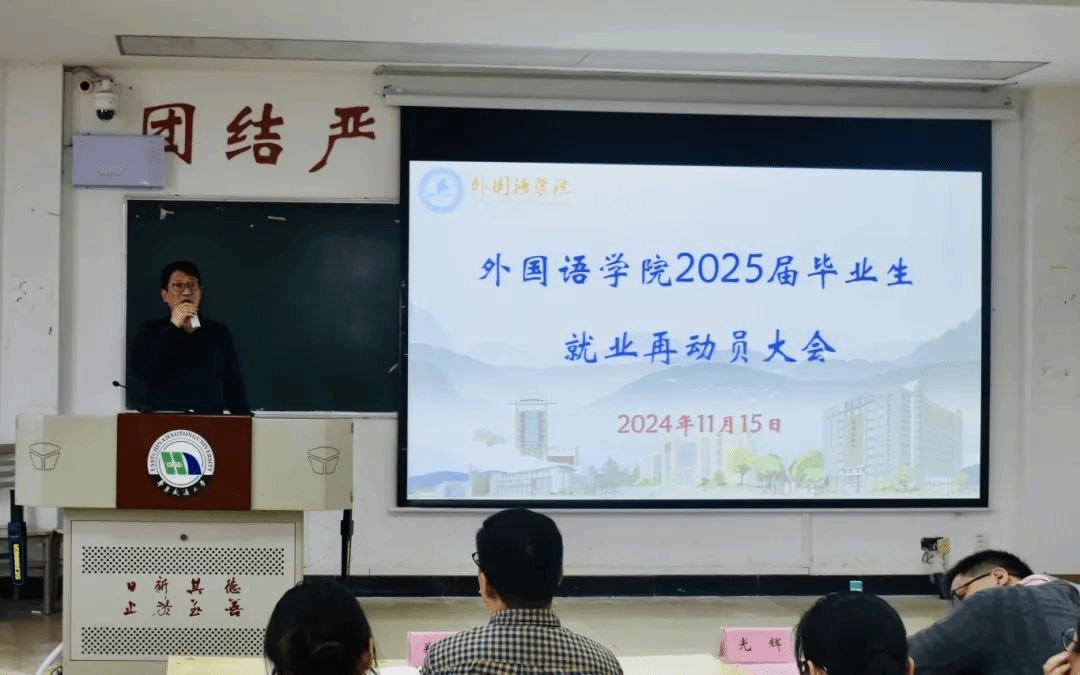 于南图301举办2025届毕业生实习动员大会暨就业再动员大会。院党委副书记光辉,实习中心主任姜浩,学工办负责人郑伟、毕业班辅导员钟雪倩出席,2025届全体毕业生参加会议,会议由郑伟主持。