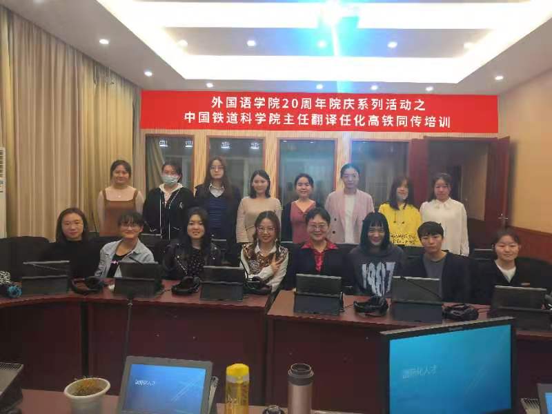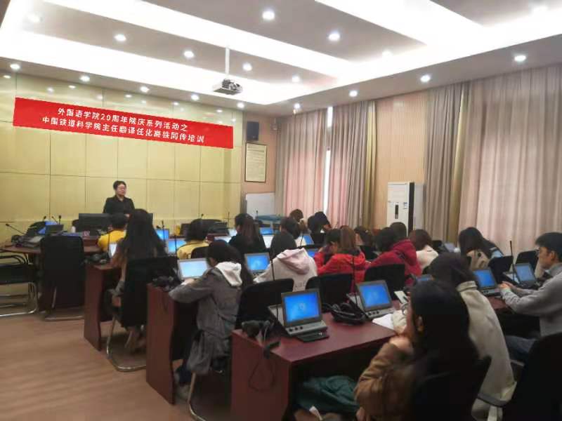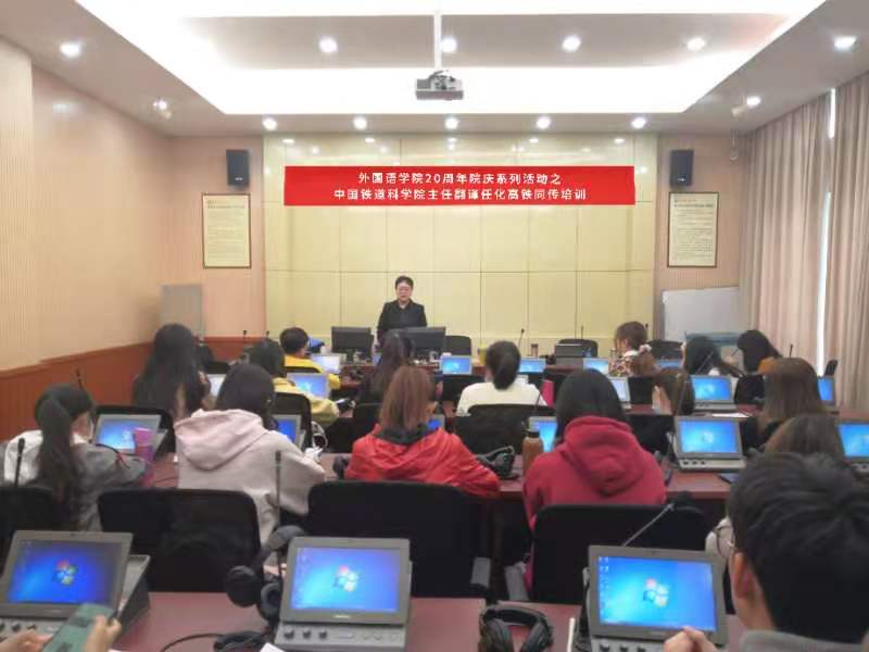 20周年院庆活动,并于11月19日至-20日在学院同传教室开展为期两天的高铁同传培训。外语学院彭翠老师陪同,翻译专业研究生和本科生踊跃参加。