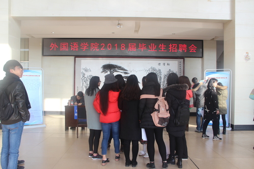 2018届毕业生专场招聘会于外院楼一楼大厅举行。招就处处长陈沈平、院长唐斌、党委书记程其胜、招就处副处长邓卫权、党委副书记王朗均到场参加并与用人单位交流,为放肆文学