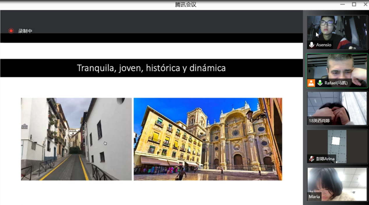 吴丽萍:很高兴能够有机会与这么优秀的老师连线交流,Rafael老师上课很有趣,图文并茂,讲课逻辑性强,给我们普及的西语国家节日文化与我们本学期修的西班牙与拉美商务礼仪与文化课程的内容相辅相成,提高了大家学习西语的兴趣,老师在课上还不断引导我们思考,跟我们互动,课后也非常热情地为同学答疑解惑。