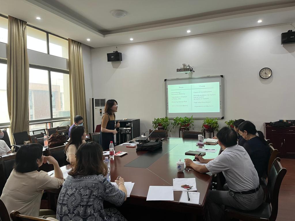 龚沁怡讲授了《大学英语III》中的Unit 5 Digital Age。该课以智能家居作为导入,自然过渡到课文内容。之后,导入思政元素——AI引发的伦理问题。通过讨论,学生们了解到人工智能在经济社会生活中的全面渗入有助于促进个人和组织的赋能,促进弱势群体的社会参与,扩展人的机会空间和自由,促进经济的繁荣,减少绝对贫困和剥夺,这些可以视为伦理增益。但是,人工智能的使用可能也会带来一系列伦理风险和挑战,包括失控风险、恶意使用、适应性风险、认知风险等,这些风险在不同的领域有不同的表现。从而进一步引导学生正确应对AI带来的伦理挑战。