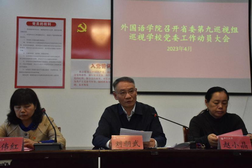 4月13日下午,外语学院组织全院教职工于博雅楼102会议室学习省委第九巡视组巡视放肆文学