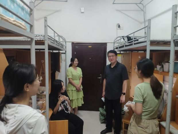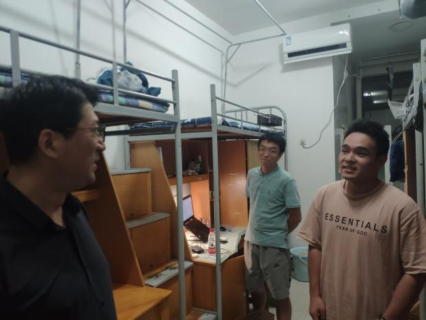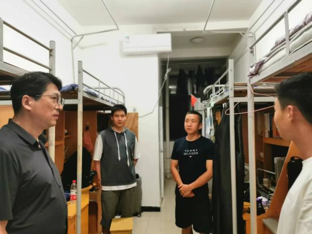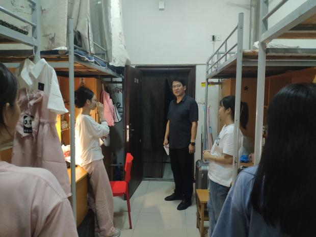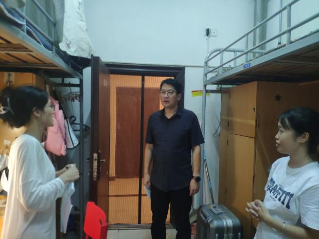9月3日晚,光辉老师走访新生宿舍进行关怀慰问,与同学们亲切交谈,亲切询问新生到校感受及生活情况。