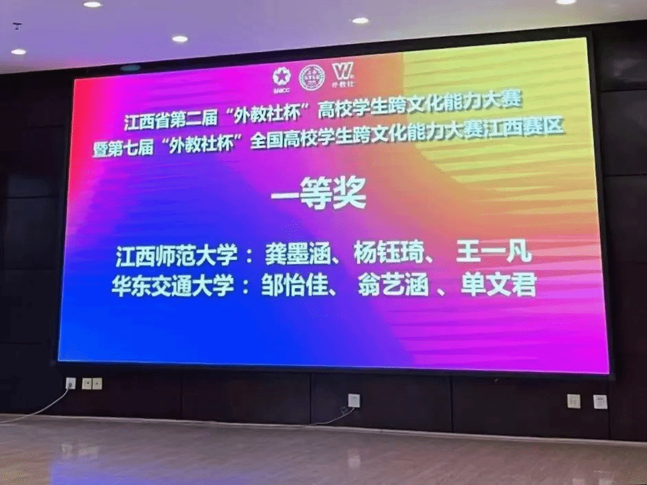 我校学生邹怡佳、翁艺涵、单文君在本次赛事上表现优秀,充分展现了专业的外语能力与演讲素养,荣获一等奖,排名高居全省第二,将代表江西省参加十一月份的国赛。