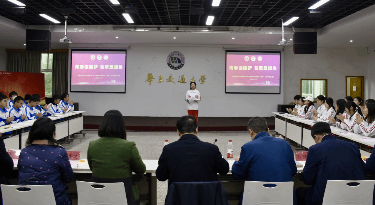 和电气与自动化工程学院于11月25日下午在南区天佑会堂联合开展“青春强国梦,吾辈显担当”主题班会。副校长杨辉,外语学院院长陆秀英、党委书记薛先庆、党委副书记光辉,电气学院党委书记赵敏、党委副书记刘修财,辅导员郑伟、夏圣伟、王伟峰出席,外语学院翻译2023-2班和电气学院电气(电牵)2024-4班全体学生参加。